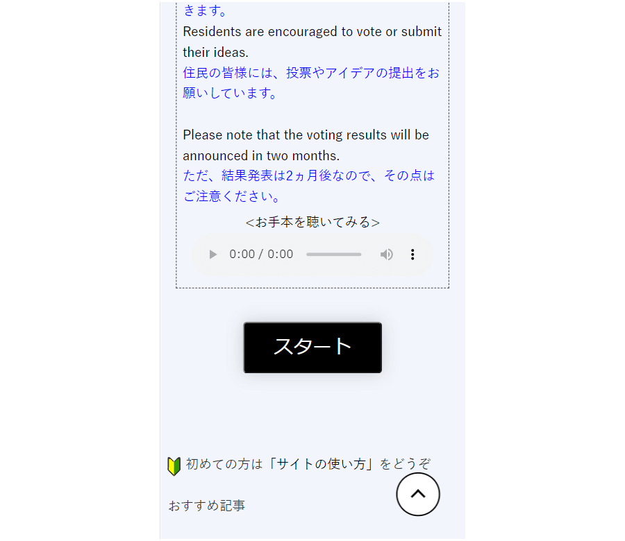 最初に日本語訳を読んで、しっかり理解してからwpmの測定を始めることをおすすめします。日本語訳を読んでみる場合は、「日本語訳」ボタンをクリックしましょう。お手本を聞くこともできます。